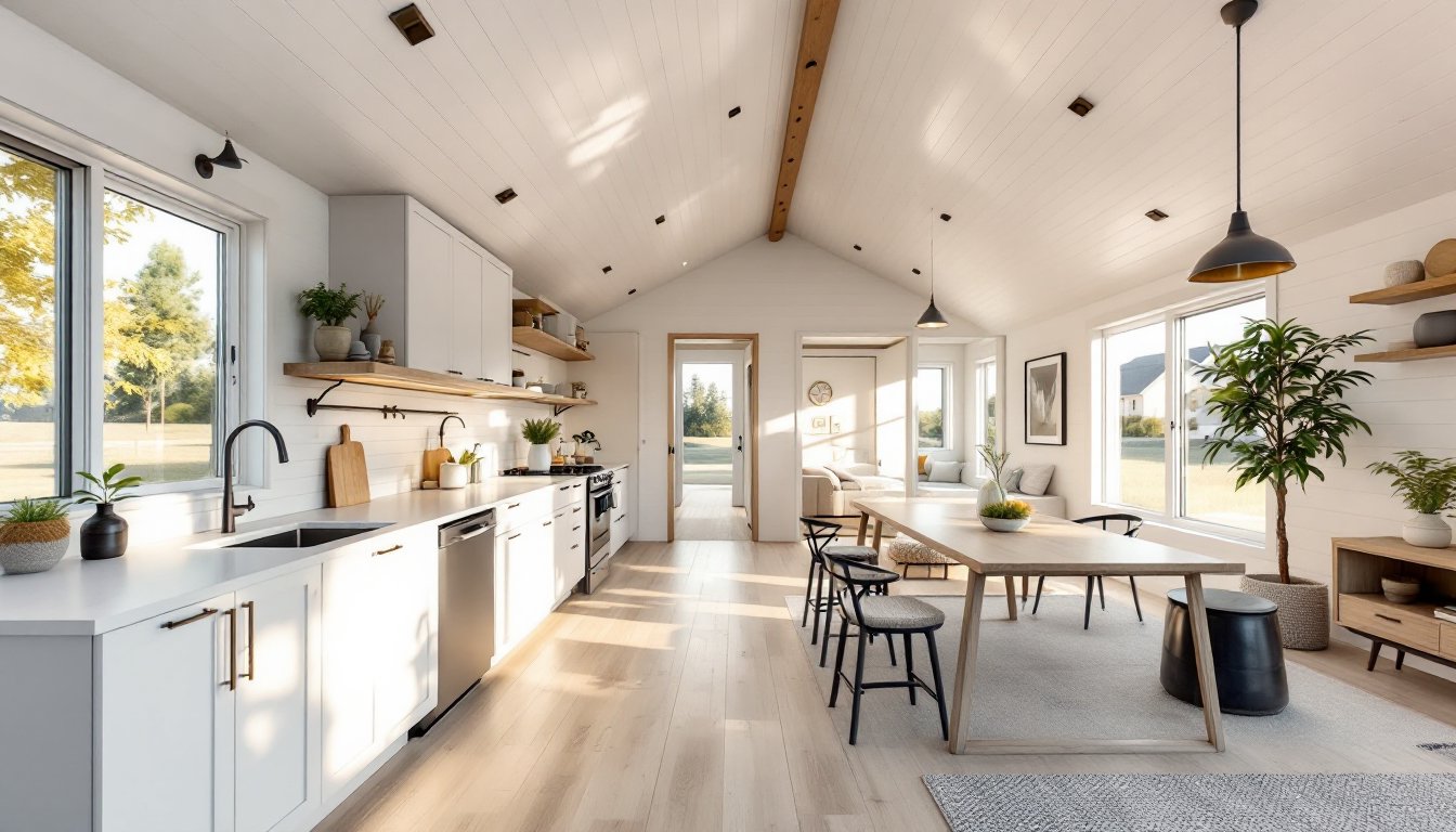 - Smart floor plan layouts—either linear or open-plan with distinct zones—are critical; an open floor plan with kitchen, dining, and living sharing one uninterrupted space makes a tiny house feel 15–20% larger than its actual square footage.